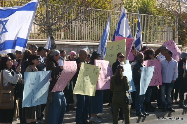 Bet Shemesh residents protested today outside the house of Minister of Interior Eli Yishai in Har Nof for the right to appeal the plans of construction of RBS C2.